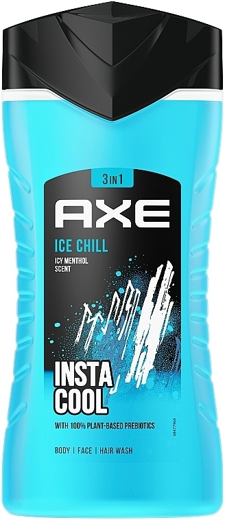 AXE Ice Chill 3-in-1 Douchegel zorgt voor een verfrissende en relaxte verzorging en reiniging van je lichaam, gezicht en haar en laat je tot 12 uur onweerstaanbaar ruiken. AXE Ice Chill Douchegel met de frisse geur van bevroren munt en citroen, is dermatologisch getest. Hoe gebruik je het? AXE douchegel is eenvoudig in gebruik. Doe een beetje douchegel op de palm van je hand. Wrijf het vervolgens tussen je handen, totdat het gaat schuimen en was jezelf verfrissend schoon. Spoel af en ruik de hele dag onweerstaanbaar. Met AXE douchegel start je de dag goed. Of je avond.
