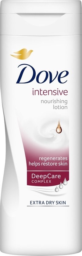 Dove Intensive Bodylotion Intensive biedt de oplossing! Deze bodylotion is minder vet dan bodylotions, waardoor de balans van de huid niet wordt verstoord. Ook brengt Dove Intensive Bodylotion niet alleen maar een laagje aan op de huid. De bodylotion bevat namelijk DeepCare Complex™, wat tot diep in de huid doordringt en de huid van binnenuit voedt. Vanwege het grote vochtgehalte van Dove Intensive Bodylotion, blijft de vochtbalans van de huid op peil. Dit zorgt voor een langdurig mooie en zachte huid. De bodylotion heeft een combinatie van huideigen voedingsstoffen en rijke essentiële oliën die je huid weer gezond maken.