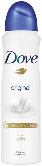 Dove Original anti-transpirant spray is de klassieke deodorant van Dove en is al sinds de begindagen van Dove topfavoriet bij vrouwen in Nederland voor de gevoelige oksels. Dove Original is de enige anti-transpirant deodorant spray die naast de tot 48 uur bescherming tegen transpiratievocht- en geur, ook je huid verzorgt met hydraterende crème.