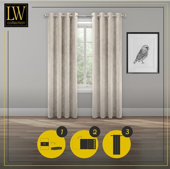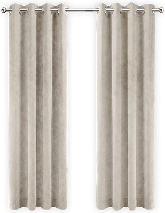 LW collection - gordijnen Beige Velvet Kant en klaar 290x270cm - Kant en klare gordijnen met ringen Velours - Fluwelen Verduisterende gordijnen