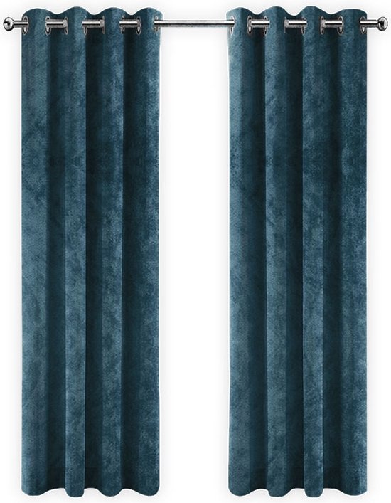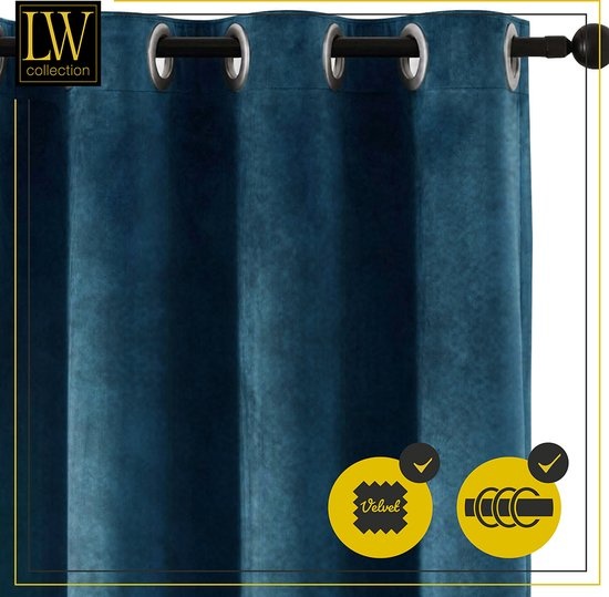 LW collection - gordijnen Donkerblauw Velvet Kant en klaar 290x270cm - Kant en klare gordijnen met ringen Velours - Fluwelen Verduisterende gordijnen