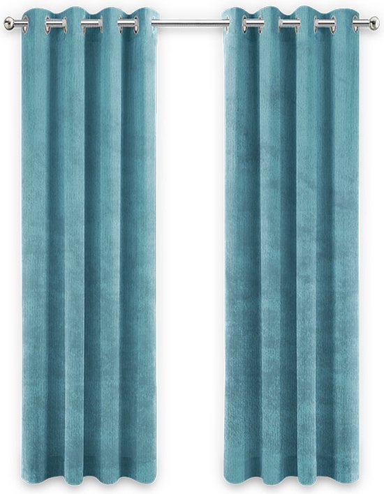 LW collection - gordijnen turquoise blauw Velvet Kant en klaar 140x270cm - Kant en klare gordijnen met ringen Velours - Fluwelen Verduisterende gordijnen
