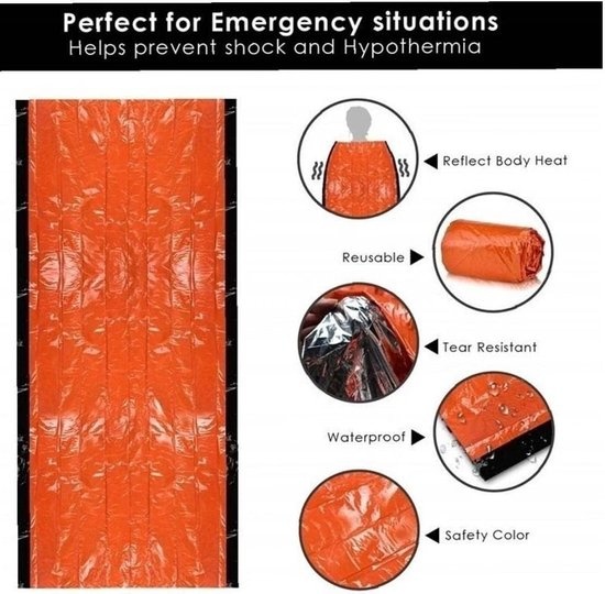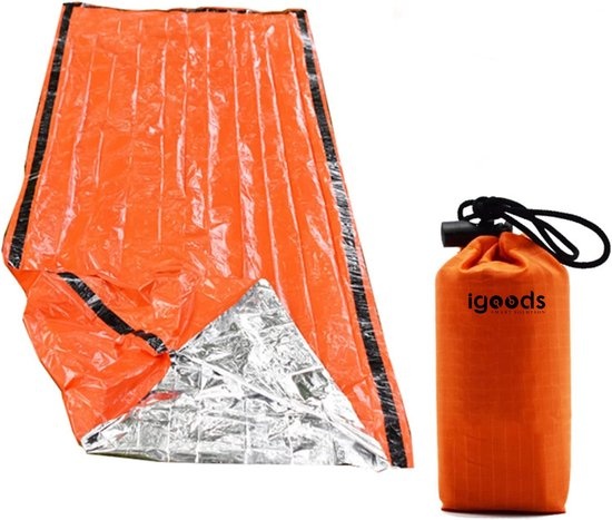 Igoods Aluminium Slaapzak - Slaapmat - Kampeer Slaapzak Lichtgewicht - Survival Slaapzak - Anti fries - Met Noodfluit - Oranje