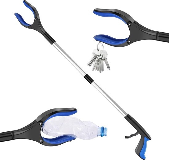 Igoods Grijparm - Draaibare Kop Afvalgrijper - Opvouwbare Grijper Helping Hand - Grijphulp van Aluminium - Grijpstok voor Afval & Zwerfvuil - Blauw