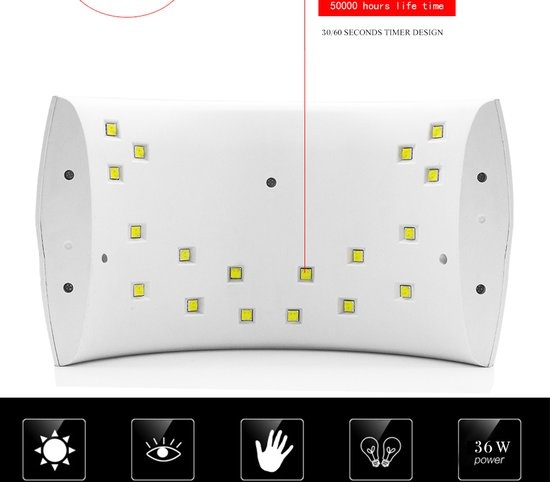 Igoods Nagellamp - 36W/18LEDS - Nagellamp LED UV Lamp voor Nagels - Geschikt voor Gelnagels en Gelpolish - UV Nageldroger - Met 30 en 60 Seconden Timer - Wit