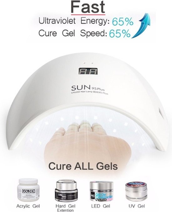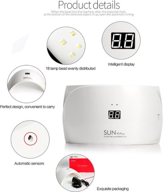 3. Houd er rekening mee dat de uithardingstijd varieert afhankelijk van het merk gellak. De SUN9C is niet geschikt voor het drogen van normale nagellak. Zorg ervoor dat je nagellak compatibel is voordat je het koopt. Beweeg uw hand niet de hele tijd totdat de behandeling is voltooid.