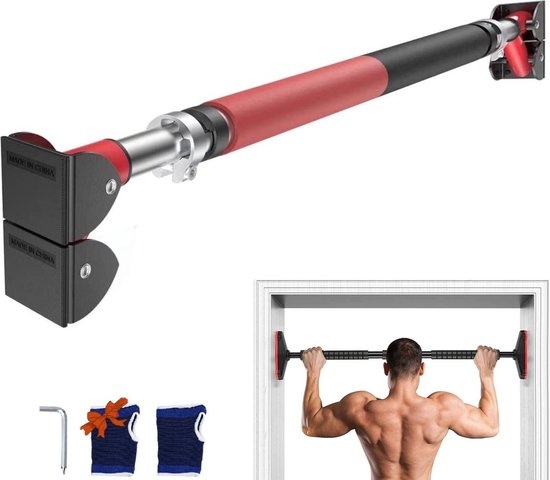 IGOODS - Pull up bar - Incl. Fitness Handschoenen - Multifunctionele Optrekstang - 72-92 cm Verstelbaar in Lengte - 300kg Belastbaar - Zwart & Rood
