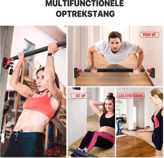UB Ubetter Sport Pull up bar - Incl. Fitness Handschoenen - Multifunctionele Optrekstang - 72-92 cm Verstelbaar in Lengte - 300kg Belastbaar - Zwart & Rood