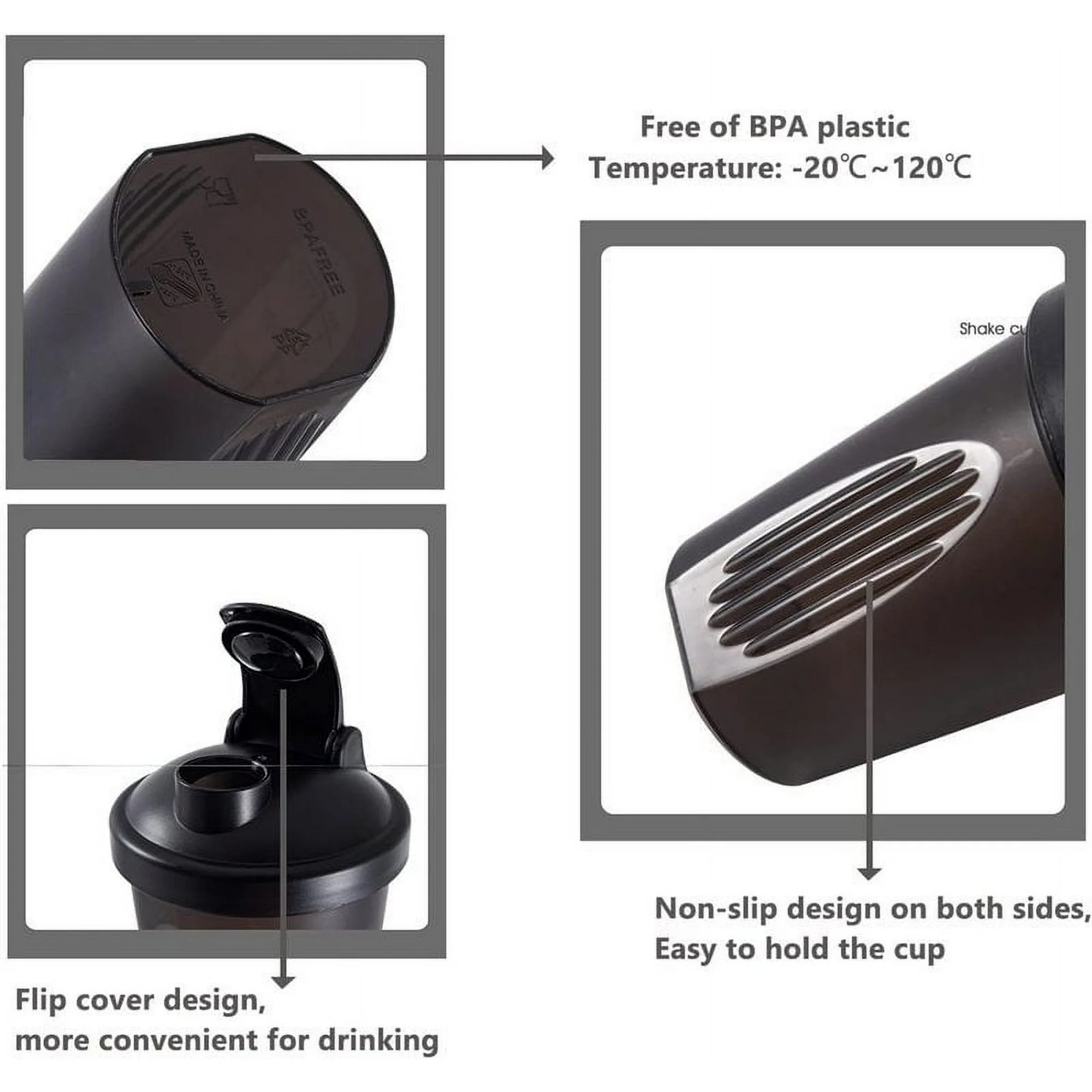 Met zijn ergonomische vorm ligt de beker prettig in de hand en is hij gemakkelijk te openen en te sluiten. Na gebruik kan de shaker snel worden schoongemaakt en is hij volledig herbruikbaar, waardoor hij een duurzame keuze is voor dagelijks gebruik.