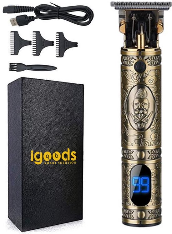 Igoods Tondeuse - Luxe Tondeuse met Display - Professionele Trimmer - Groomer - Scheerapparaat - Baardtrimmer - Draadloos - USB Opladen - Inclusief 3 opzetkammen – Goud