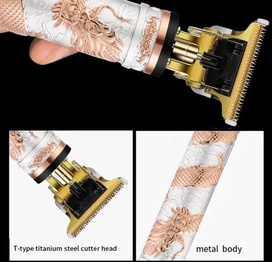 Deze luxe baardtrimmer of tondeuse kan gebruikt worden om uw baard te trimmen of het hoofdhaar te scheren. Twee in een dus! De trimmer ligt fijn in de hand en ziet er daarnaast nog eens stijlvol uit dankzij de gouden kleur en graveringen. De keramische kop bevat scherpe mesjes waardoor jij in een handomdraai je baard of hoofdhaar kan trimmen. De tondeuse word meegeleverd met 3 verschillende opzetkammetjes van 1mm, 2mm, 3mm, zo heb je zelf in de hand hoe lang de haren moet blijven. U kunt door de meegeleverde opzetstukken op 4 verschillende standen scheren. Aangenaam, efficiënt en snel scheren is wat je kan verwachten van de baardtrimmer.