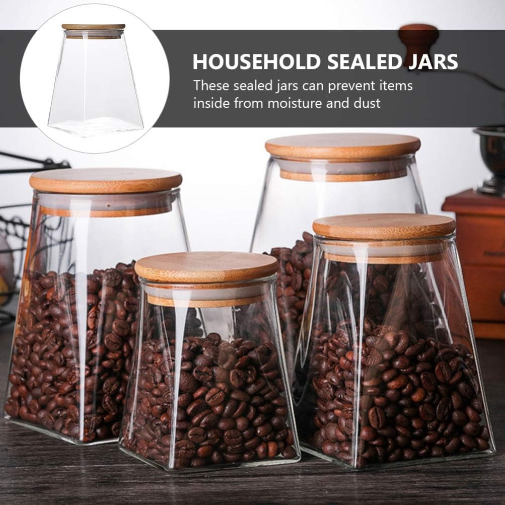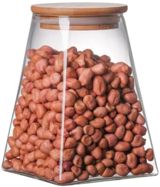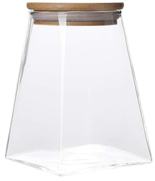 Igoods Voorraadpot - Driehoekige Voorraadpot - Glazen Voorraadpot - Luchtdicht - Houten Deksel - 12cm