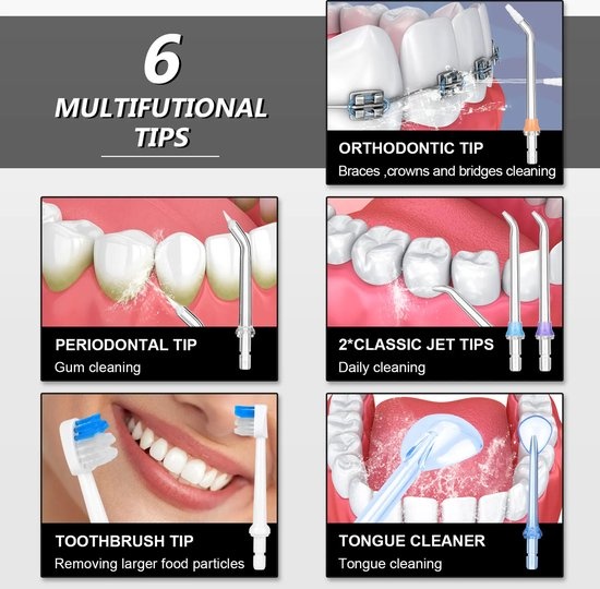 - Effectiever dan Traditioneel Flossen: De krachtige waterstralen reinigen dieper dan traditionele floss, zonder het tandvlees te irriteren.