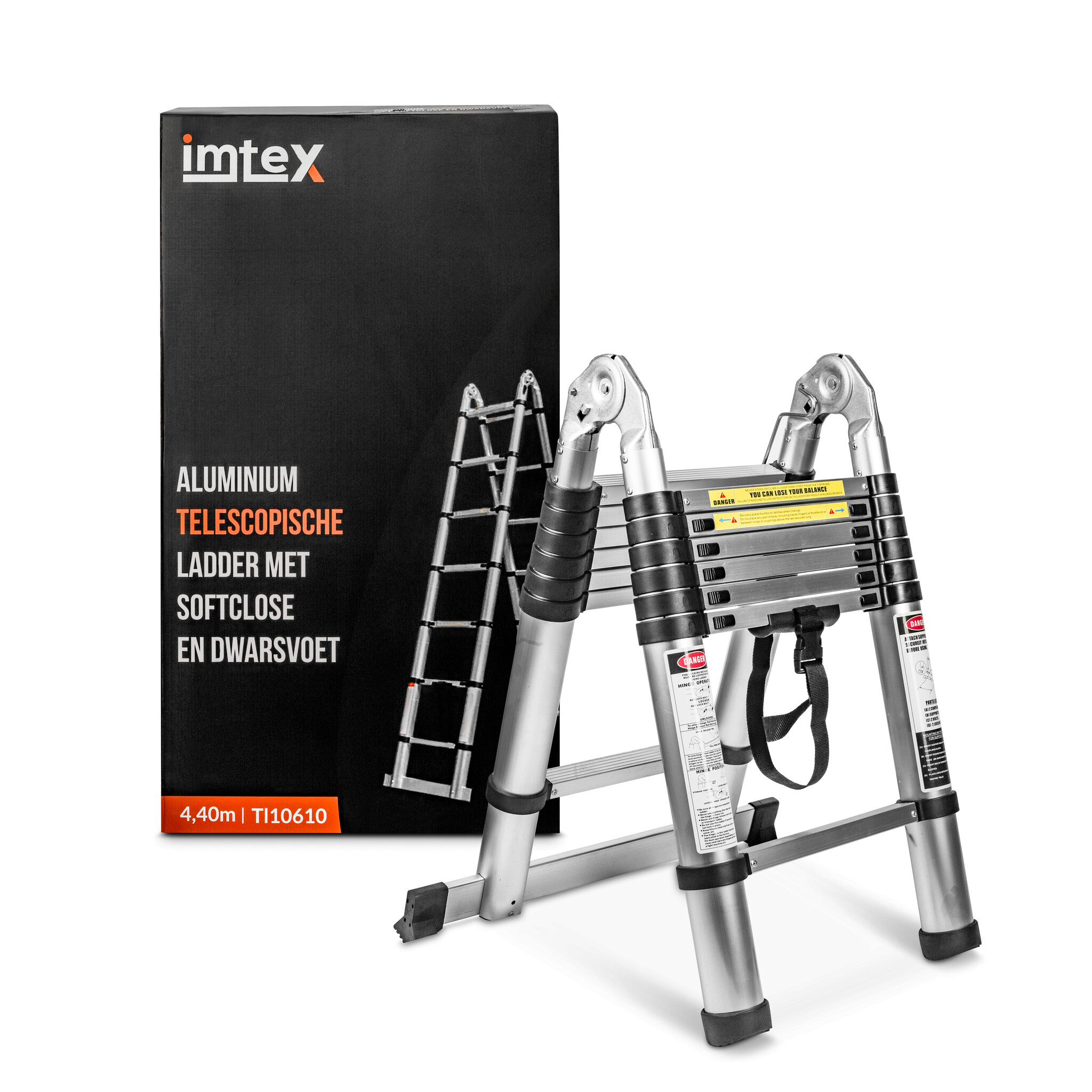 Imtex Telescopische Vouwladder - Vouwladder - 7-treeds - 4.40m Werkhoogte - Softclose - Anti-slip Aluminium