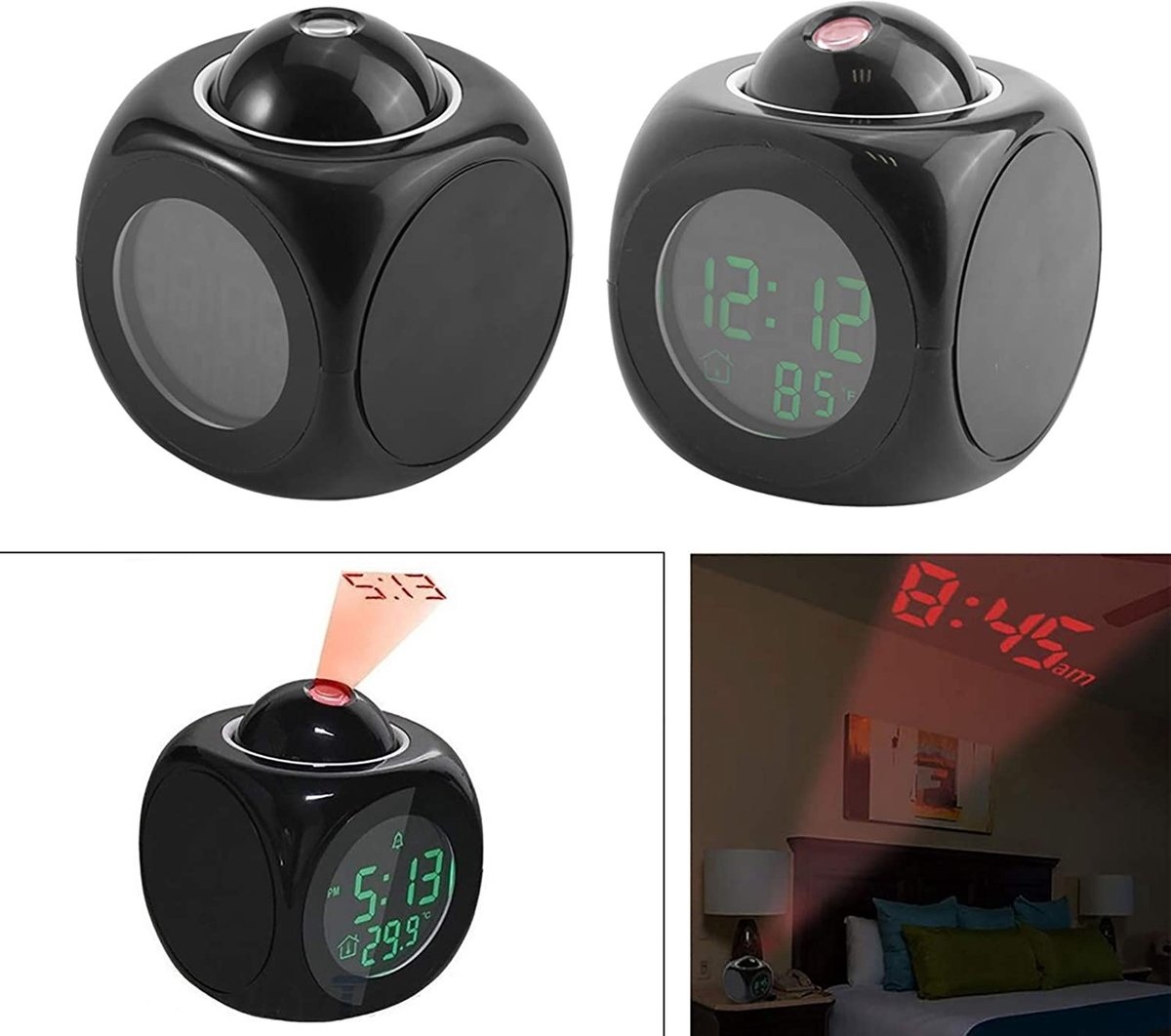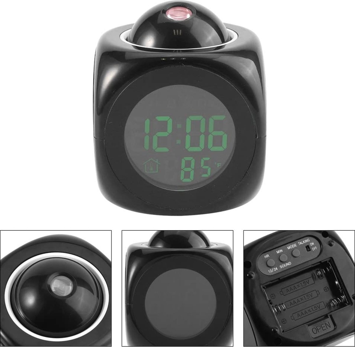 1.Tijd projectie-functie (directe projectie op de muur, geeft de huidige tijd in rood lettertype, grote lettertype);