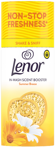Lenor Geurparels Summer Breeze geven je was een frisse, lichte en zomerse geur die langdurig blijft hangen. De geur roept het gevoel op van een warme zomerbries en fris gewassen was die buiten heeft gehangen, voor een schoon en verkwikkend resultaat bij elke wasbeurt.