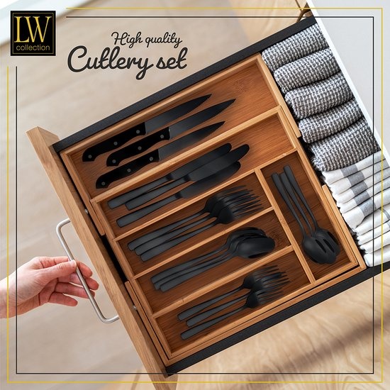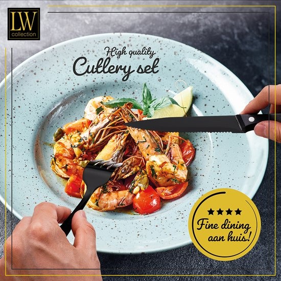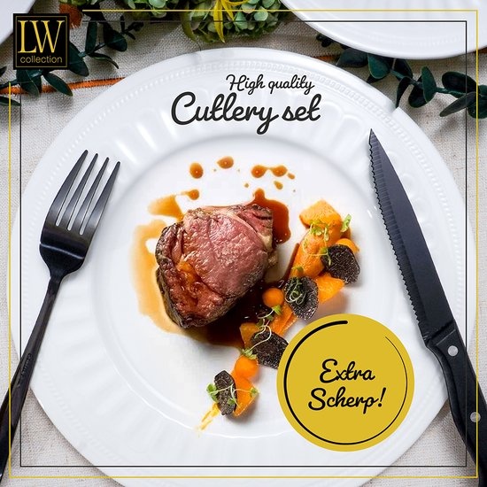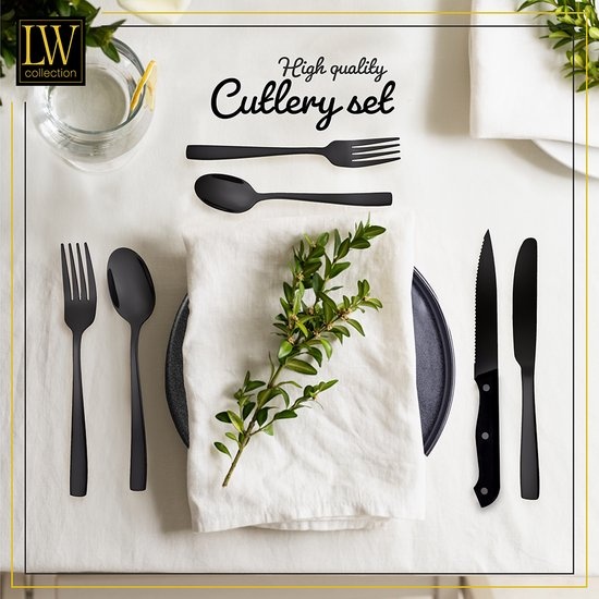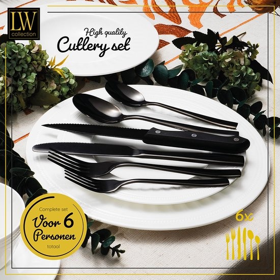Met de LW Collection Bestekset Zwart, 36 stuks, ben je direct voorzien van een complete set eetgerei voor 6 personen. Met deze luxe bestekset dek je altijd stijlvol de tafel. Door de luxe uitstraling is de set zowel geschikt voor alledaags gebruik als voor speciale evenementen zoals verjaardagen, bruiloften en (kerst)diners.