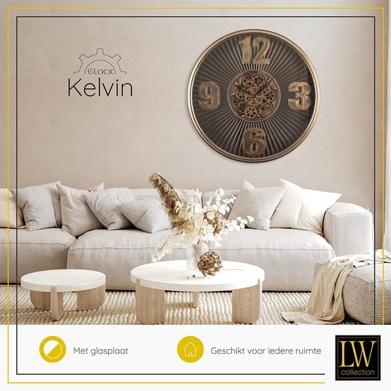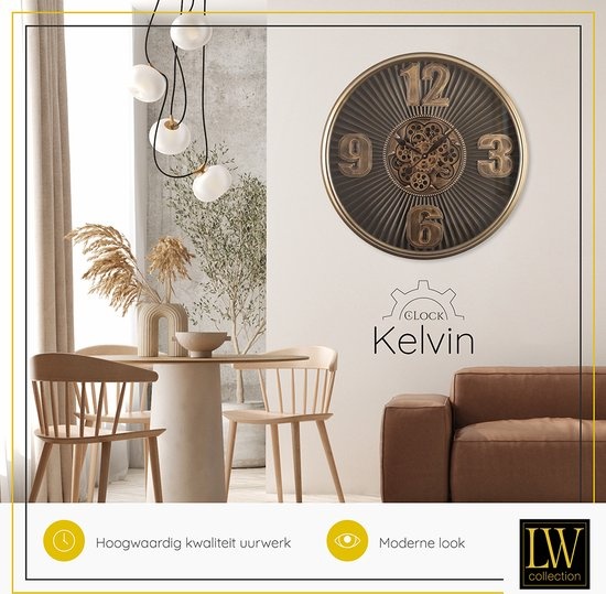 Ben je op zoek naar een luxe radar wandklok die uw woonkamer, slaapkamer of andere ruimte in huis compleet maakt? Je kunt jouw zoektocht staken! LW Collection biedt een breed assortiment aan wandklokken met draaiende tandwielen voor diverse interieurstijlen. Zo ook deze prachtige klok met een afmeting van maar liefst 80cm uit de serie KELVIN.