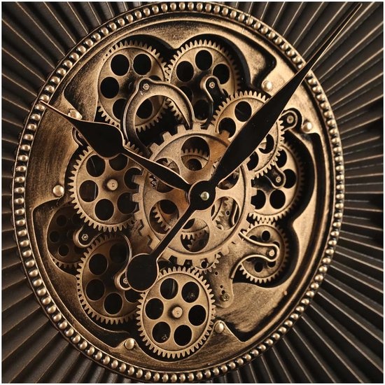 Wandklok met draaiende tandwielen