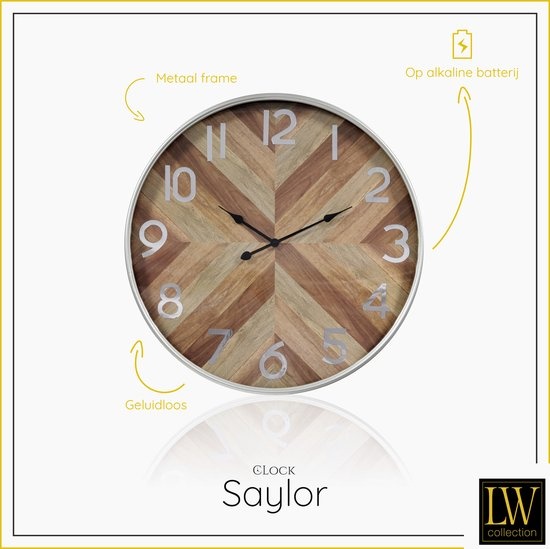 Het zoeken naar een geschikte wandklok voor uw huis kan een tijdrovende en lastige klus zijn. Een klok is immers allang niet meer enkel functioneel maar moet ook passen bij het interieur. LW Collection biedt een breed assortiment aan diverse klokken voor verschillende interieurstijlen.Wandklok 80cmZoekt u vooral een klok met een uitgesproken vormgeving of gaat u liever voor een neutrale klok die bij meerdere stijlen past? In deze serie biedt LW Collection prachtige uniek ontworpen wandklokken aan in meerdere afmetingen en vormen. De wandklokken hebben een uniek design en zijn daarmee zeer populair bij onze klanten.BijzonderWandklok SAYLOR is geen standaard klok die u in vele huishoudens zult treffen. Onze klanten die deze mooie klok in huis haalden zochten expliciet naar een exclusieve eyecatchende wandklok aan de muur.Wandklok met stil uurwerkStille klokken van LW Collection laten de tijd geruisloos voorbijgaan. Door het stil uurwerk hoor je geen ‘’getik’’ en is de stille wandklok bijvoorbeeld ook geschikt voor je slaapkamer. Kies uit een van de vele geluidloze wandklokken in onze collectie.Over het merk: Het team van LW Collection heeft veel passie voor interieur inrichting. Wij vinden dat iedereen in een huis moet wonen waar ze van houden. Het merk LW Collection is opgericht uit passie voor woonaccessoires. LW Collection is dagelijks bezig om unieke en moderne producten te ontwerpen. Zo biedt LW Collection onder andere unieke exclusieve wandklokken aan.