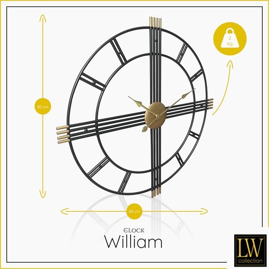 Liefhebbers van unieke klokken kunnen hun hart ophalen! Nieuw in ons assortiment is deze stoere klok WILLIAM. Deze opvallende klok is nog niet zo lang bij LW Collection verkrijgbaar en nu al één van onze hardlopers!Limited EditionNiet verrassend aangezien we deze serie gelimiteerd hebben laten produceren waardoor deze beperkt beschikbaar is. Zo blijft de klok uniek en is de trotse eigenaar verzekerd van een exclusieve aankoop!Over het merk: Het team van LW Collection heeft veel passie voor interieur inrichting. Wij vinden dat iedereen in een huis moet wonen waar ze van houden. Het merk LW Collection is opgericht uit passie voor woonaccessoires. LW Collection is dagelijks bezig om unieke en moderne producten te ontwerpen. Zo biedt LW Collection onder andere unieke exclusieve wandklokken aan.