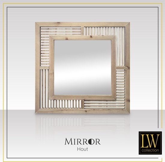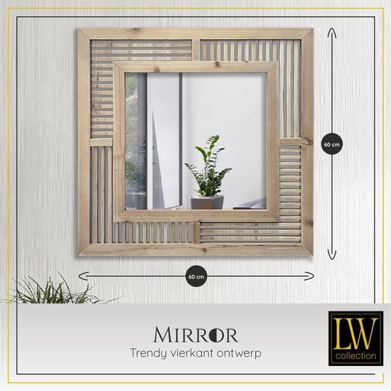 LW Collection Wandspiegel bruin vierkant 60x60 (bxh) cm hout