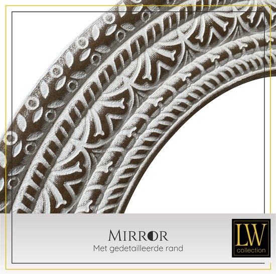 Met deze mooie vintage spiegel van LW Collection maakt u uw inrichting compleet. Door zijn ronde vorm is de spiegel geschikt voor elke ruimte in uw huis. Denk hierbij aan bijvoorbeeld uw slaapkamer, woonkamer, kinderkamer, studeerkamer of de eetkamer.
