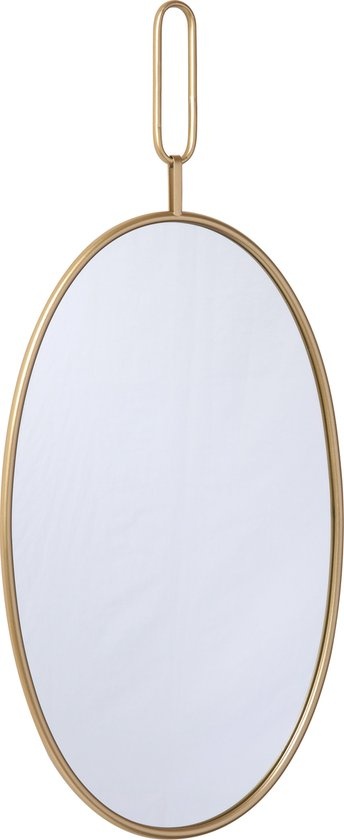 Maak uw inrichting compleet met deze mooie ovale spiegel. Door het tijdloze design is deze muurspiegel geschikt voor vrijwel elke interieurstijl. Hang hem bijvoorbeeld op in uw woonkamer, slaapkamer, eetkamer, studeerkamer of badkamer. De wandspiegel heeft een afmeting van 45 x 96 (breedte x hoogte) cm en heeft een dunne gouden rand. Aan de bovenkant zit een haak bevestigd waarmee u de gouden spiegel eenvoudig kunt ophangen. Het stevige frame is gemaakt van metaal en afgewerkt met een gouden poedercoating. De moderne spiegel is ook beschikbaar in de kleuren zilver en zwart.