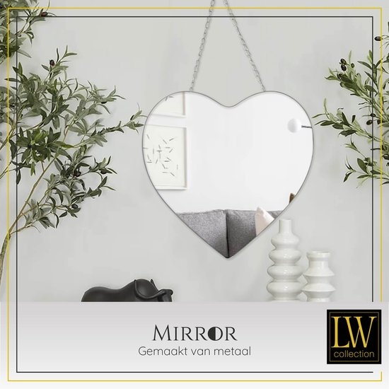 LW Collection Wandspiegel hartje zilver met touw 40x61 (bxh) cm metaal