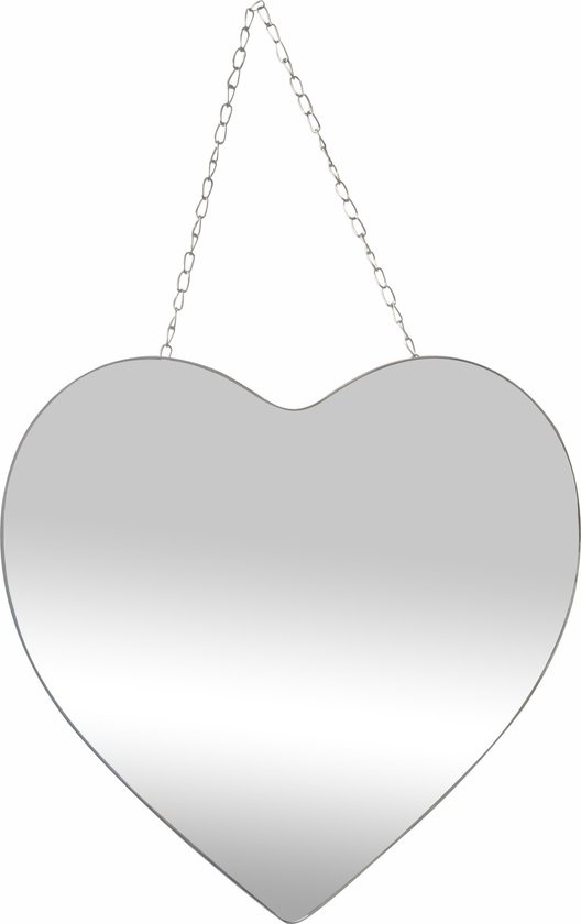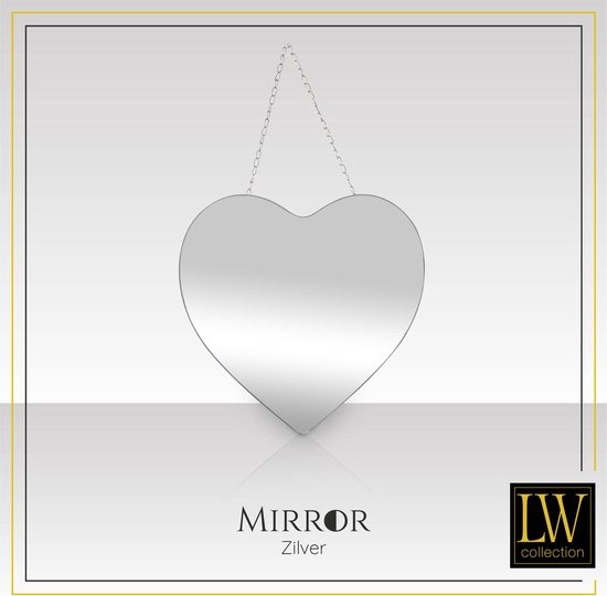 Vul uw inrichting aan met deze trendy hart spiegel. De spiegel heeft de vorm van een hart en beschikt over een touw waaraan hij opgehangen kan worden. De muurspiegel is een leuke eyecatcher in uw huis. Hang deze moderne spiegel bijvoorbeeld op in uw woonkamer, slaapkamer, kinderkamer, gang of badkamer. De wandspiegel heeft een afmeting van 40 x 61 (breedte x hoogte) cm. Het dunne frame is gemaakt van metaal met een zilveren poedercoating. De zilveren spiegel is eenvoudig op te hangen aan het touw wat aan de spiegel bevestigd zit.