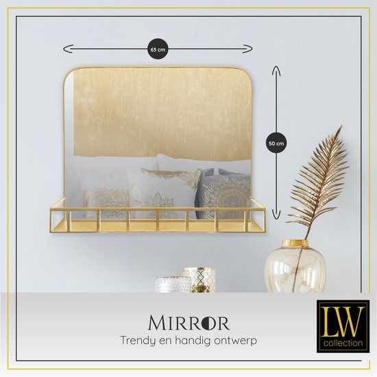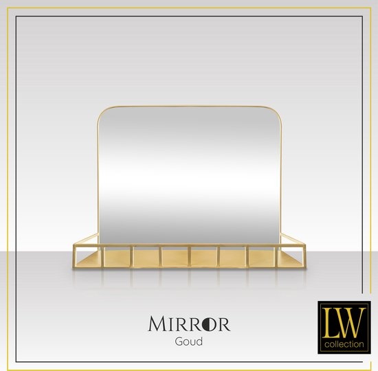 LW Collection Wandspiegel met plankje goud 63x50 (bxh) cm metaal