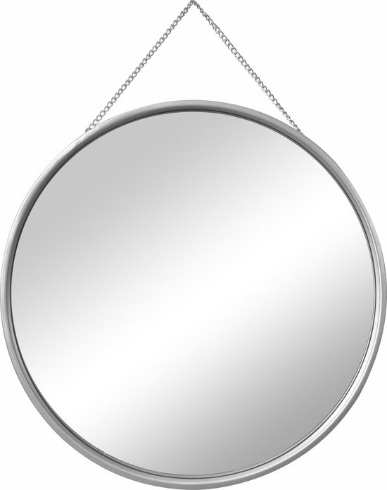 Vul uw inrichting aan met deze mooie zilveren spiegel. Door zijn ronde vorm is de spiegel geschikt voor vrijwel elke ruimte in uw huis. Denk bijvoorbeeld aan de woonkamer, gang, eetkamer, slaapkamer of badkamer.