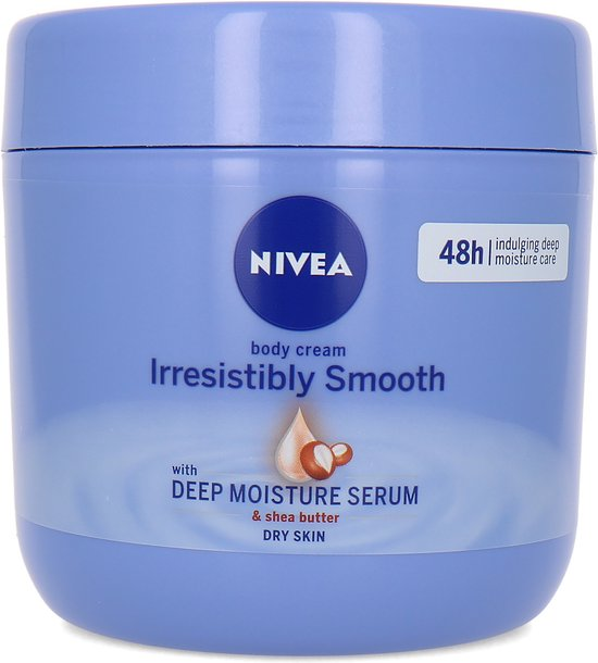 De Nivea Body Crème – Irresistibly Smooth – 400 ml is een verzorgende bodycrème die speciaal ontwikkeld is om je huid zijdezacht en soepel te maken. De formule met sheaboter en het unieke Deep Moisture Serum dringt diep door in de huid en hydrateert intensief – tot wel 48 uur lang.