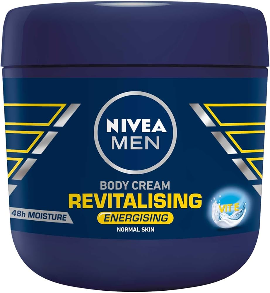 De Nivea Men Body Crème – Revitalising Energising – 400 ml is een krachtige, verzorgende bodycrème die je huid direct verfrist en een energieke boost geeft. De formule met vitamine E en het Deep Moisture Serum hydrateert intens en helpt de huid veerkrachtig en gezond te houden – tot wel 48 uur lang.