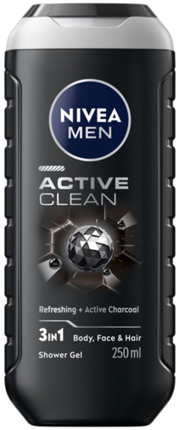 Ervaar een intensieve reiniging met de NIVEA MEN Active Clean Douchegel. Deze krachtige 3-in-1 douchegel voor lichaam, gezicht en haar is speciaal ontwikkeld voor mannen die hun huid grondig willen reinigen na een lange dag of intensieve inspanning. De formule bevat actieve houtskool, een natuurlijk ingrediënt dat werkt als een vuilmagneet en onzuiverheden en overtollig talg effectief absorbeert. Zo voelt je huid fris, schoon en verzorgd aan – zonder uit te drogen.
