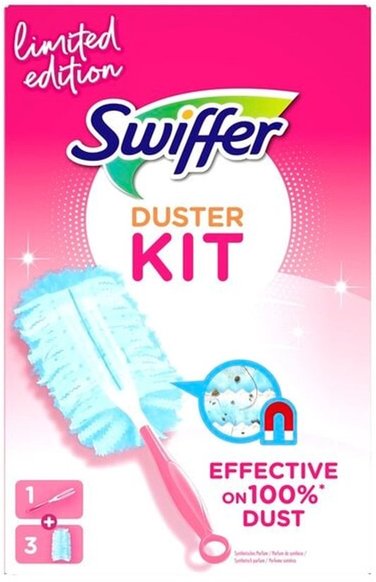 Met de Swiffer Duster Kit maak je eenvoudig en snel stofvrij schoon. De speciale vezels vangen stof, vuil en haren op in plaats van ze te verplaatsen, waardoor je oppervlakken echt schoon worden.